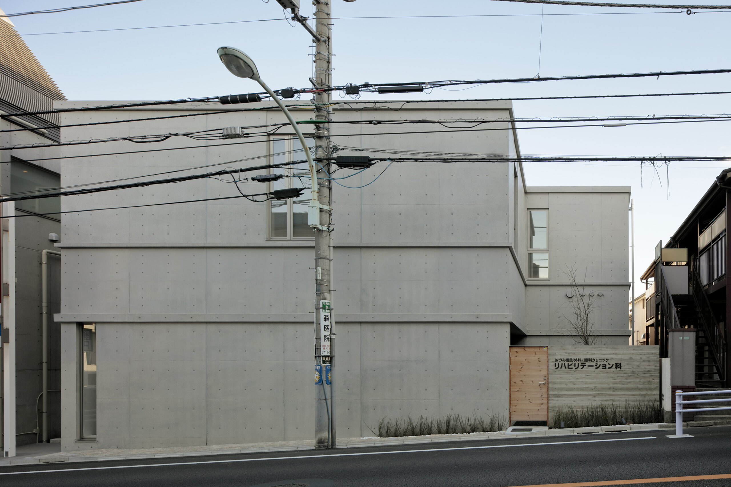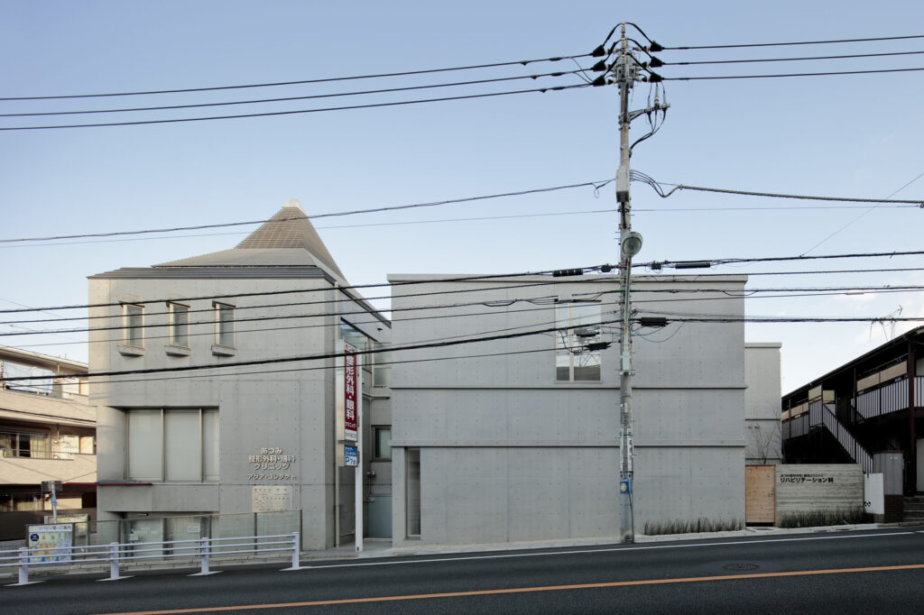既存の整形外科クリニックに対する、リハビリ室の増築計画。親身で温 かみのある医療サービスを地域に提供しているクライアントに相応しい建物となるよう心がけました。